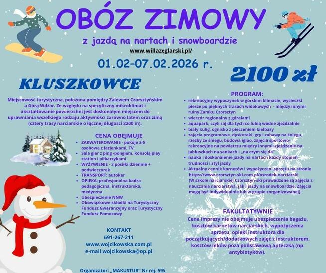 Kluszkowce - 01.02. - 07.02.2026 Zapraszamy na obóz zimowy w miejscowości Kluszkowce. Położona pomiędzy Zalewem ...